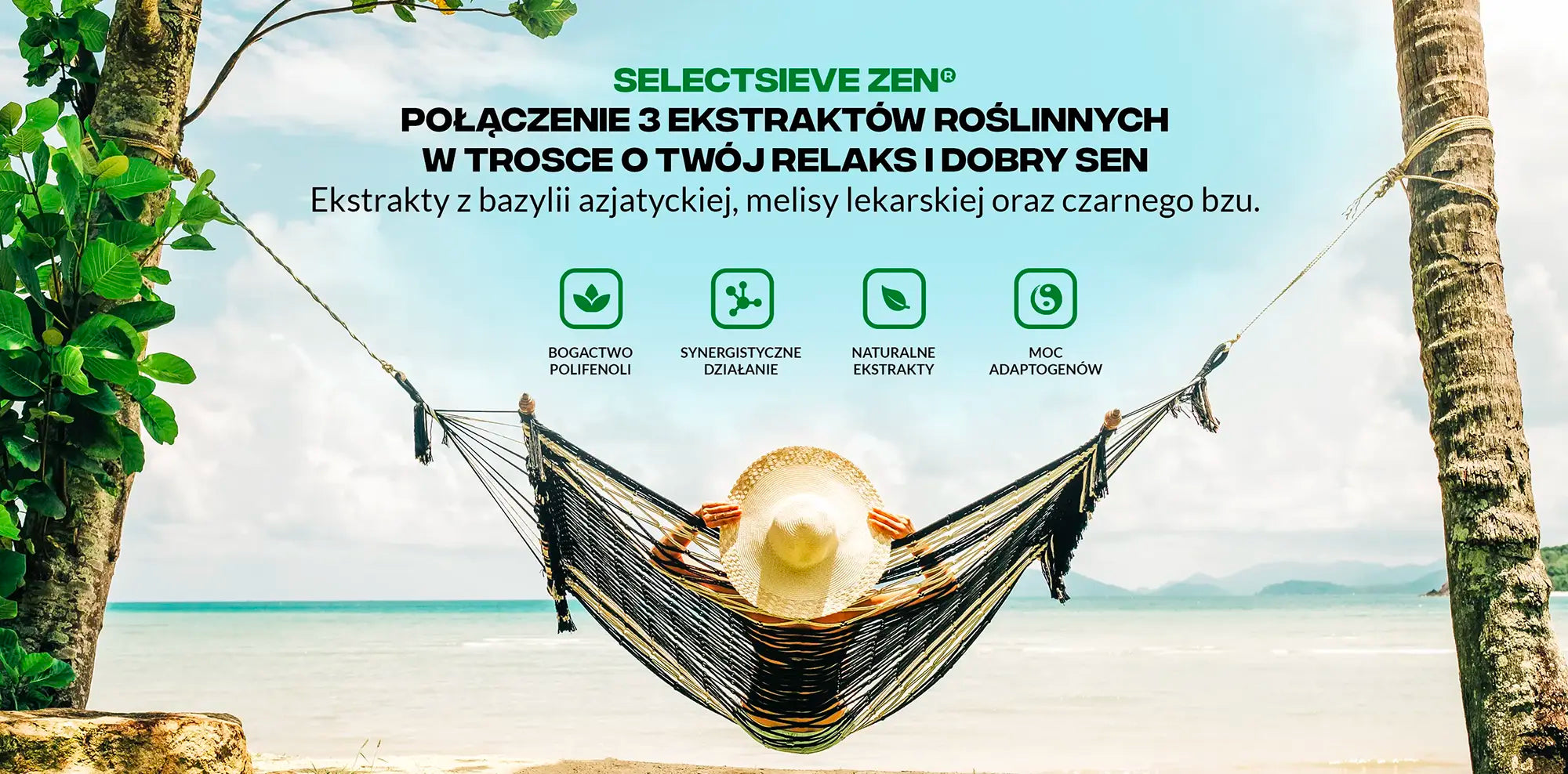 5 - Magnez (Aquamin® Mg) pomaga w utrzymaniu prawidłowych funkcji psychologicznych, a wraz z witaminą B6 wspiera prawidłowe funkcjonowanie układu nerwowego oraz przyczynia się do utrzymania prawidłowego metabolizmu energetycznego; magnez odgrywa również rolę w procesach biochemicznych związanych z odpowiedzią organizmu na stres; L-teanina (SUNPHENON®) to związek wpływający na aktywność neuroprzekaźników takich jak GABA iserotonina i wspiera mechanizmy odpowiedzialne za spokój i dobre samopoczucie; L-teanina moduluje aktywność fal mózgowych alfa, wspierając stan czujnego relaksu i koncentracji na konkretnym zadaniu; Ekstrakty z mięty zielonej i zielonej herbaty (DailyZz®) dzięki zawartości polifenoli wspierają funkcje poznawcze, takie jak pamięć i koncentracja; bazylia azjatycka i melisa lekarska (SelectSIEVE Zen®) wspomagają odporność organizmu na stres i sprzyjają utrzymaniu jasności umysłu w ciągu dnia.