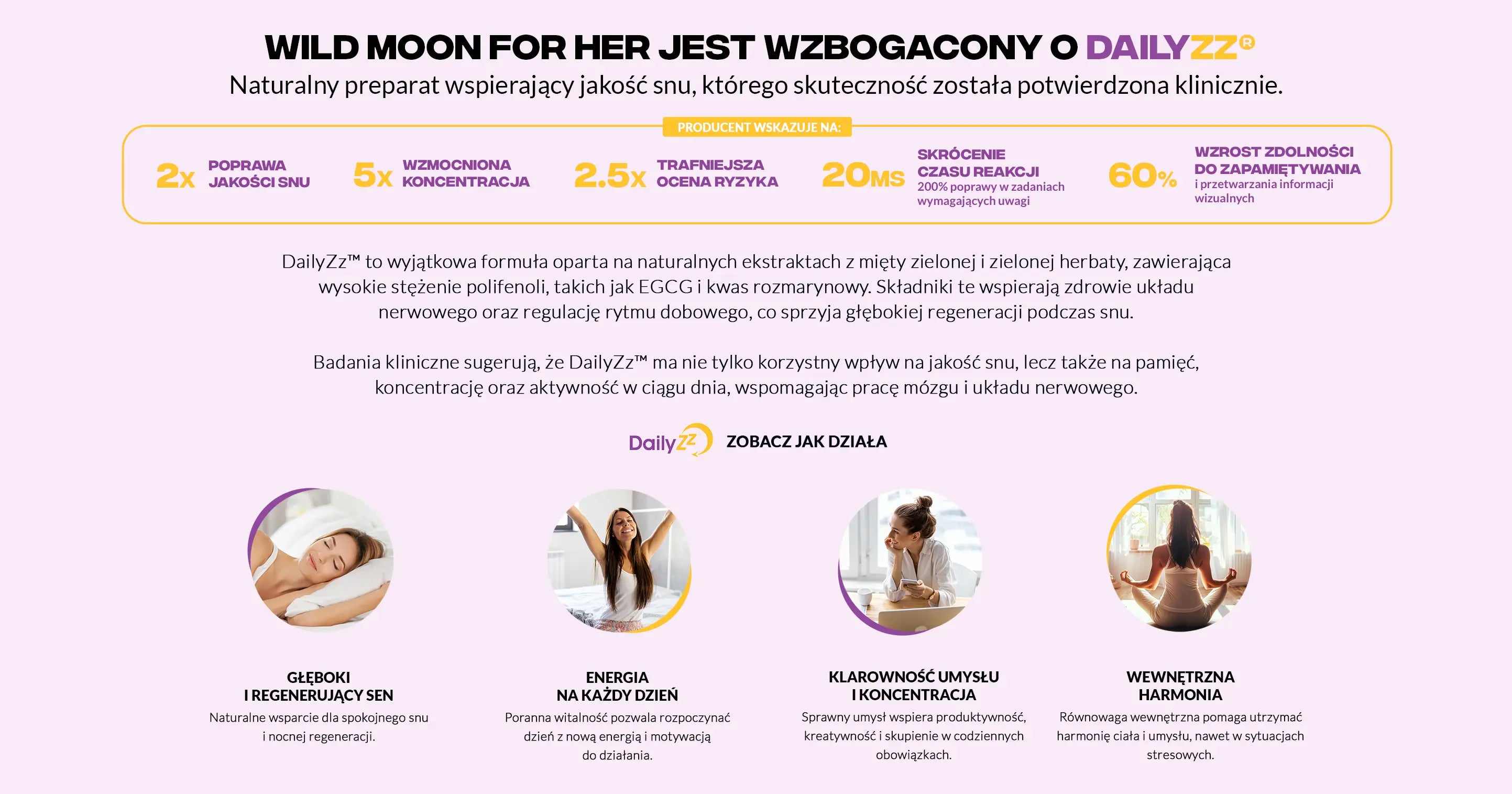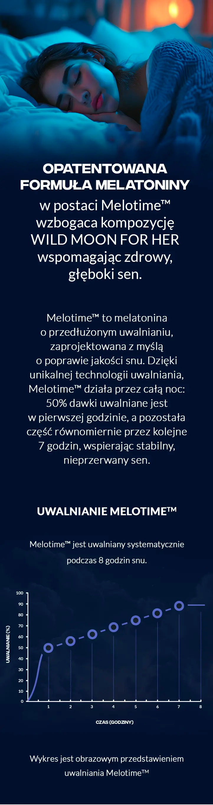 Aż 8 składników aktywnych wspierających: jakość snu, ukojenie umysłu, regenerację organizmu oraz dostarczenie sił na kolejny dzień! (¹,²,³,⁴,⁵,⁶)