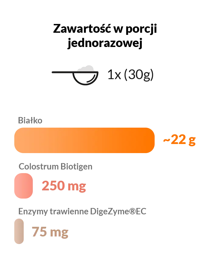 Wzbogacony o Colostrum Biotigen oraz enzymy trawienne DigeZyme®EC